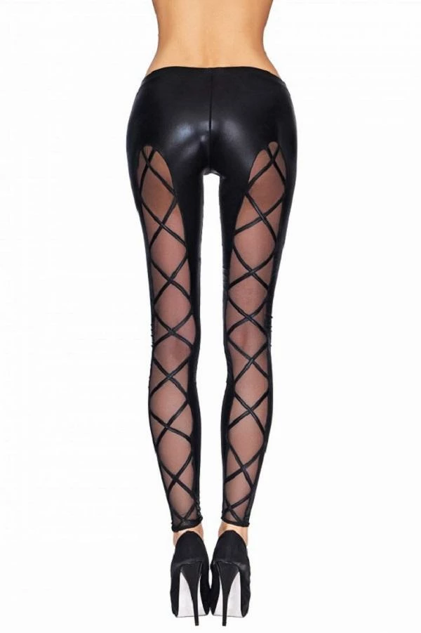 Leggings made of leather and tulle, make the legs look longer, are comfortable to wear and elegant at the same time. Made in EU.
