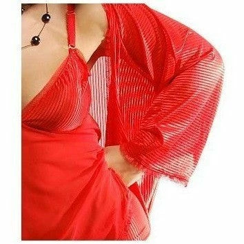 Beautiful vibrant red sheer lingerie robe with stripe background design. Please note this is for the robe not the babydoll nightdress in photo image