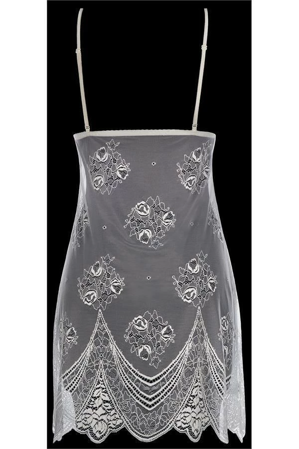 Seductive, ecru baby doll ladies lingerie nightdress will not go unnoticed even under the cover of the night… This baby doll will enchant you with refined lace decoration and subtle transparent material. Fashion is emphasizing the beauty of feminine silhouette. Sensual and delicate – it will add charm and give you the confidence. This baby doll includes lace G-string. It can be co-ordinated with gloves V-6936 Carriage if desired.