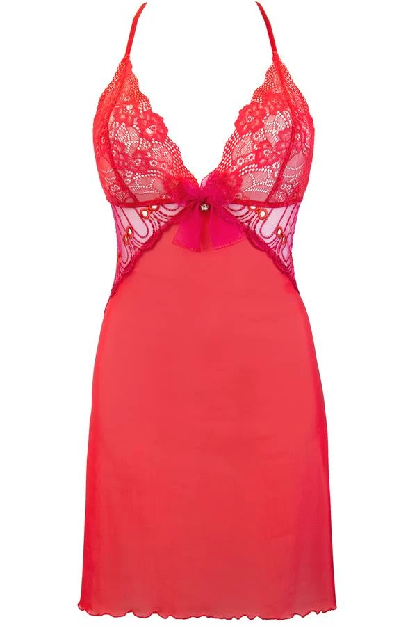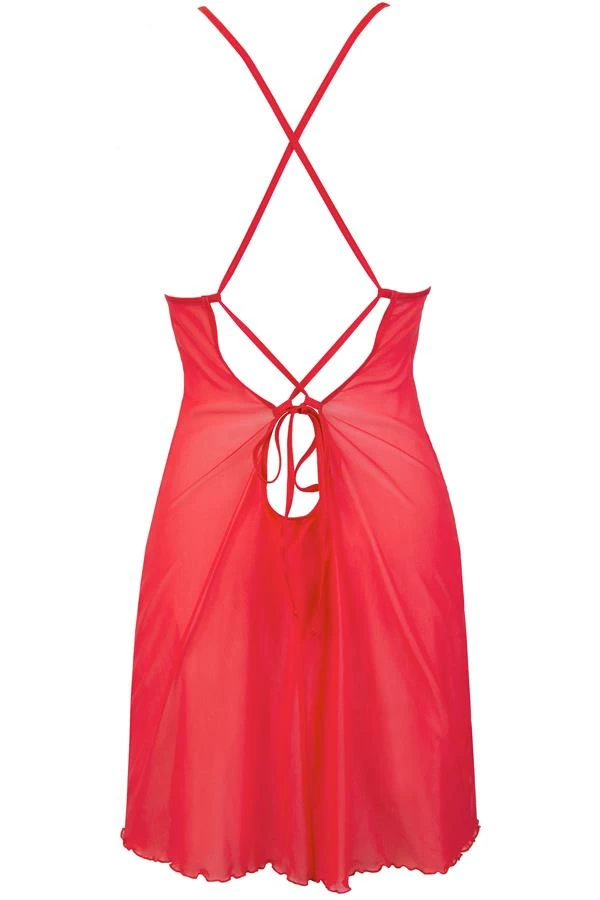 An extraordinary and subtle proposal from Axami V-9559, full of girlish charm, is sure to attract your heart. The combination of strawberry tulle and flowery pattern is a dream of the summer closed in delicate fabric. This charming model will only give you pleasant sensations. The top is adjustable thanks to a tie of two strings crossing on the back.