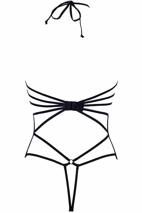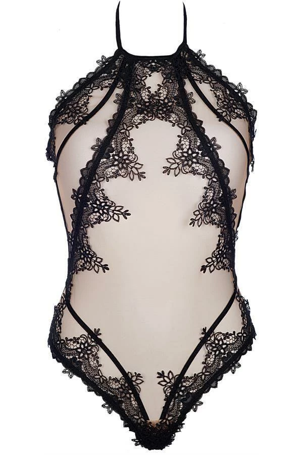 Transparent sensual body V-8910 made of delicate black lace, combined with transparent beige tulle will highlight the beauty of your figure. Axami lingerie will makes you look like a million dollars. Body has an original, very sexy cut. A unique proposition from Axami for special occasions. Body tied at the neck, it has a hook and eye fastening at the back.