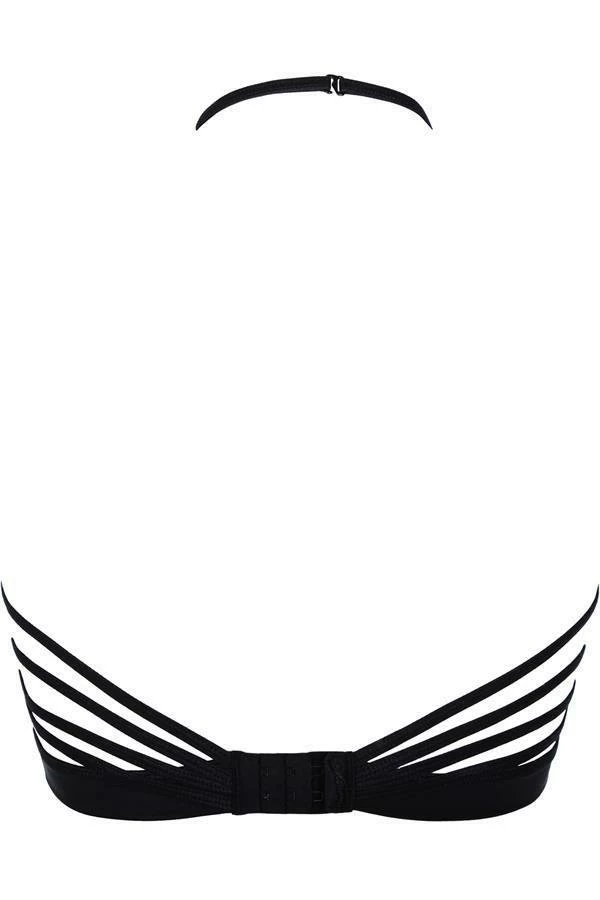 Bra top of the top this season, a lace top with lotus flower filigree, is a universal model to wear with a V-neck jacket or on a special night. Beautiful back fastening made up of four thongs connected with a delicate hook and eye at the end. The top has the removable neck part. Its universal classic and at the same time non-standard elite character makes it irresistible. This bra top can be co-ordinated with G-String V-9018 also in this collection.