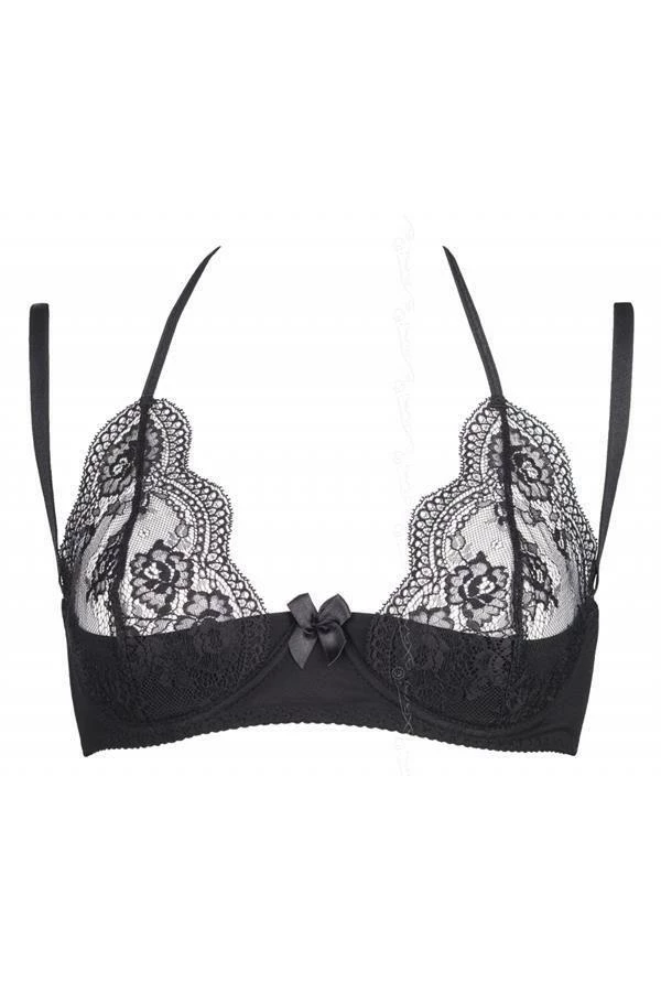 The intrigue bra seduces you with a transparent lace. This model highlights the beauty of your neckline and guarantees a spectacular look. It allows you to feel alluring, sexy and feminine. This bra can be co-ordinated with a garter belt V-5802 and G-string V-5508. This bra is fastened with hooks and tied at the neck. The cups are partially stiffened with wires.