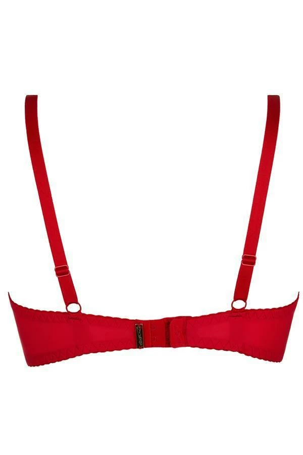 The unique proposition – only from Axami! Push-up bra seduces you with passionate red colour and captivating decoration on the neckline – which makes you want to reveal a little bit more . The thin, flexible strips connect the straps and the bra cups – creating an intriguing adornment. Universal and absolutely unique at the same time – model fulfils the dream of lingerie you want and can show! Looks great with when co-ordinated with garter-belt V-7014 ,G-String V-7018 and V-7128 G-String. The bra has a hook and eye fastening on the back. Adjustable shoulder straps are not removable