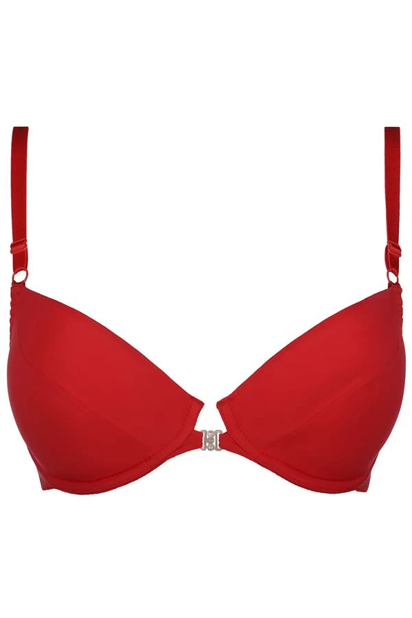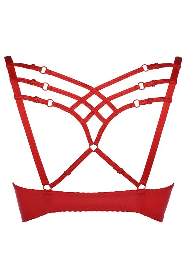 Red push-up bra seduces you by interesting decoration on the back – which will make you want to reveal a bit more . The thin, flexible strips connected together – create an intriguing adornment. This model is both universal and absolutely unique. It looks fantastic when co-ordinated with G-string V-8108 and stocking V-7084.