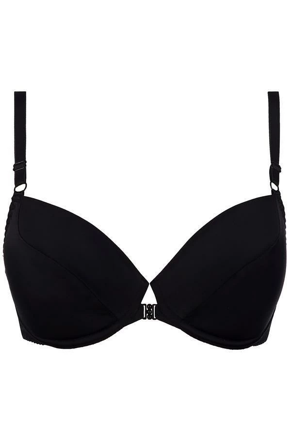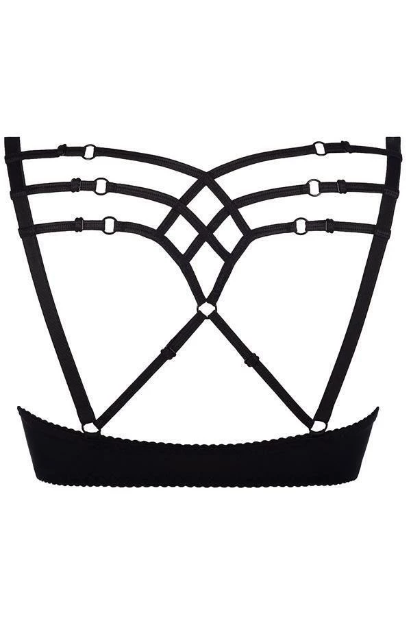 Black push-up bra seduces you by interesting decoration on the back – which will make you want to reveal a bit more … The thin, flexible strips connected together – create an intriguing adornment. This model is both universal and absolutely unique. It looks fantastic in a set with G-string V-8158 and stockings V-7064.