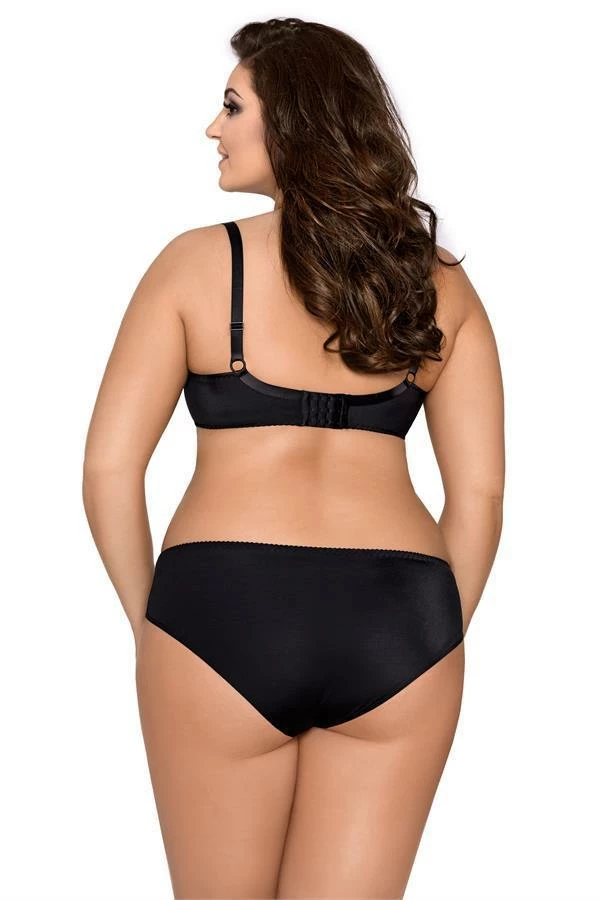Half padded bra is a very original model due to the unusual combination of black delicate tulle and lace decoration on the neckline. Beautiful red decoration emphasizes the elegance and uniqueness of this model and whole cut. This bra can be co-ordinated with briefs V-8423 and G-String V-8428.