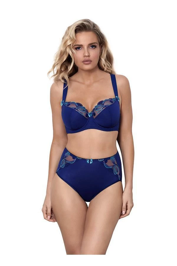 Half-padded bra with comfortable wider straps is a subtle combination of elegance and girly charm. Soft and comfortable cut fits perfectly into the silhouette and emphasizes your sex appeal. This bra can be co-ordinated with briefs V-8533 or high-waist briefs V-8536 also in this collection. Plus Size model has a wider straps, two-three levels hook and eye fastening at the back.
