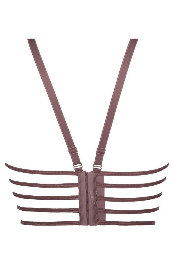 Intriguing soft cup long-line bra in beautiful plum colour is an unique proposition from Axami. The silky smooth lace, little bow and sensual back -create elegant and feminine composition. This bra can be co-ordinated with G-string V-8638. This bra has a hook and eye fastening and not removable straps.