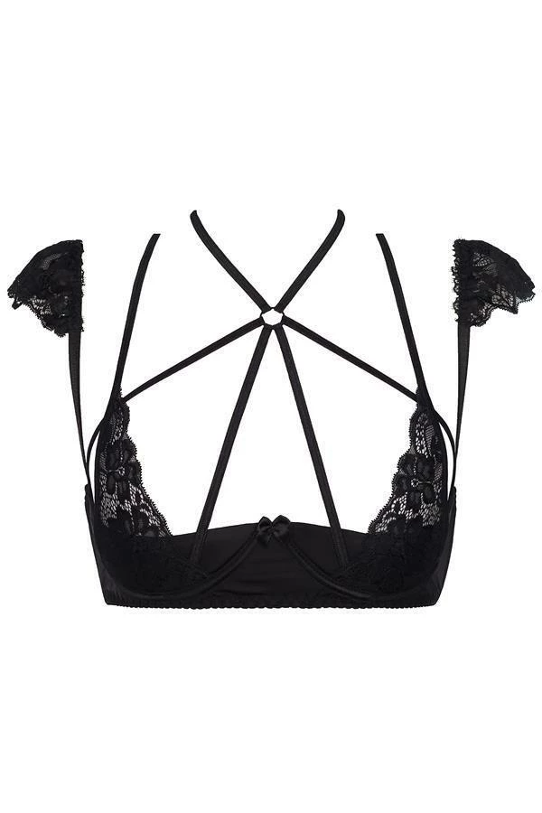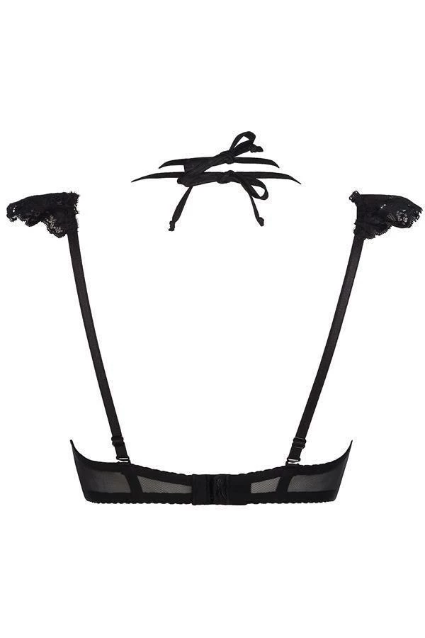 Black bra impresses with the simplicity of black cups and richness of lace. Soft and sensual at the same time. Binding on the neck and the classic, removable shoulder straps, will fit it perfectly to your needs. The highest quality fabric ensures superior comfort and unforgettable outcome of seduction. This bra can be co-ordinated with G-string V-8648.