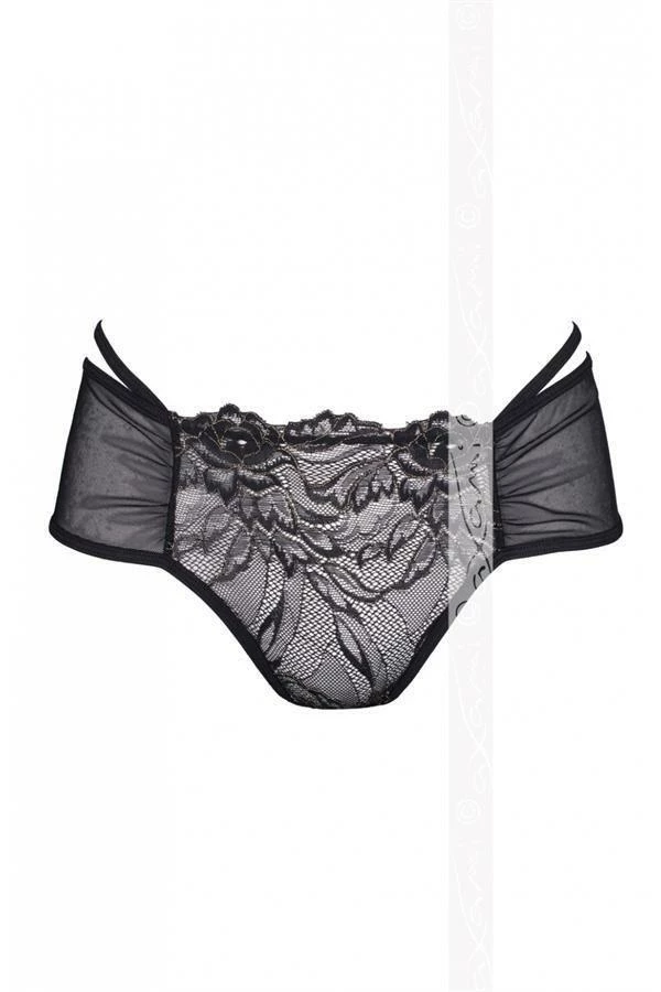 Deviously modest briefs surprise with very sexy back. Transparent tulle and voluptuous lace reveal only the hint of the mystery and you will decide if you want to reveal more. The avant-garde style will provide a unique and passionate discoveries… Especially when co-ordinated with bra V-5891 Meteorite