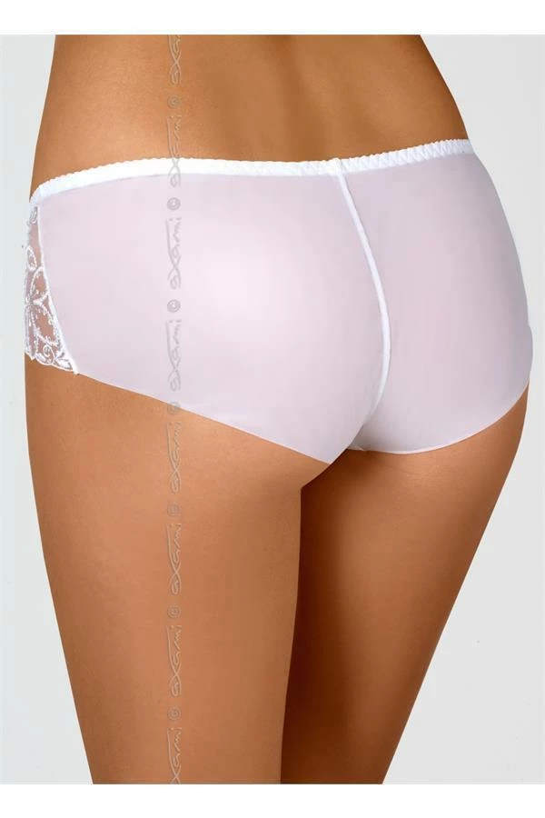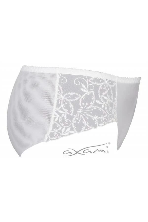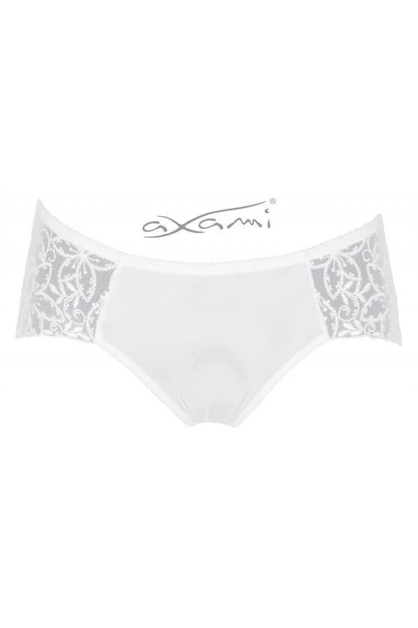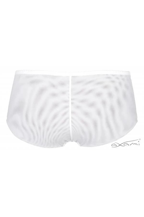 White sophisticated ladies lingerie briefs are connection of smooth and delicate tulle and embroidery designed especially for Axami. Between floral motifs You can notice tiny but significant at the same time detail a Axami Logo. Perfect on a daily basis as well as on special occasion. Astonishing briefs presents can be co-ordinated with a bra V-6311 Vin