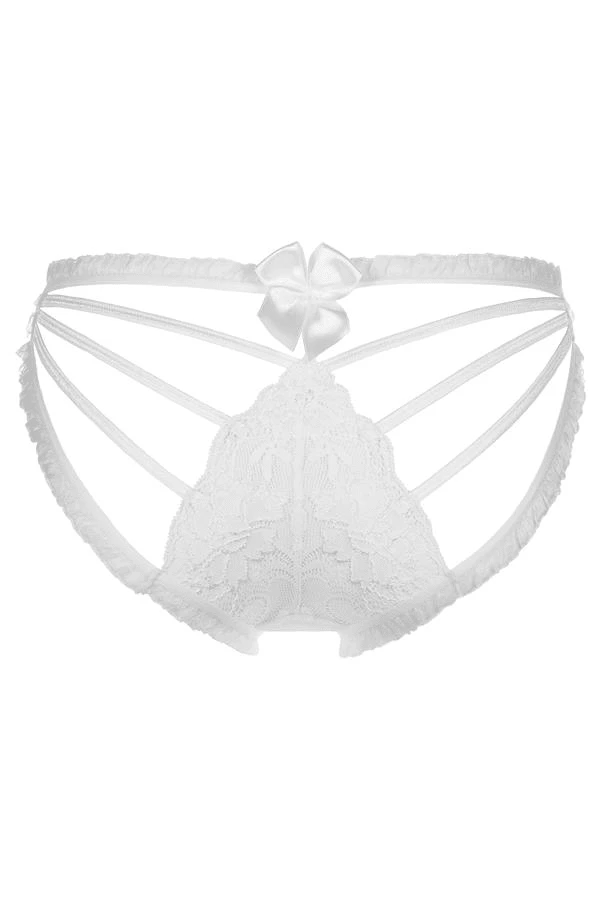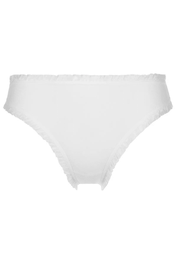 White briefs panties in a subtle white colour, initially flirts with simplicity only to surprise with a very impressive slit in the back. Graceful flounces that highlight the beauty of your body are encouraging to bold discoveries. This model creates a phenomenal can be co-ordinated with Garter V-7174 , V-7171 bra and V-7251 bra