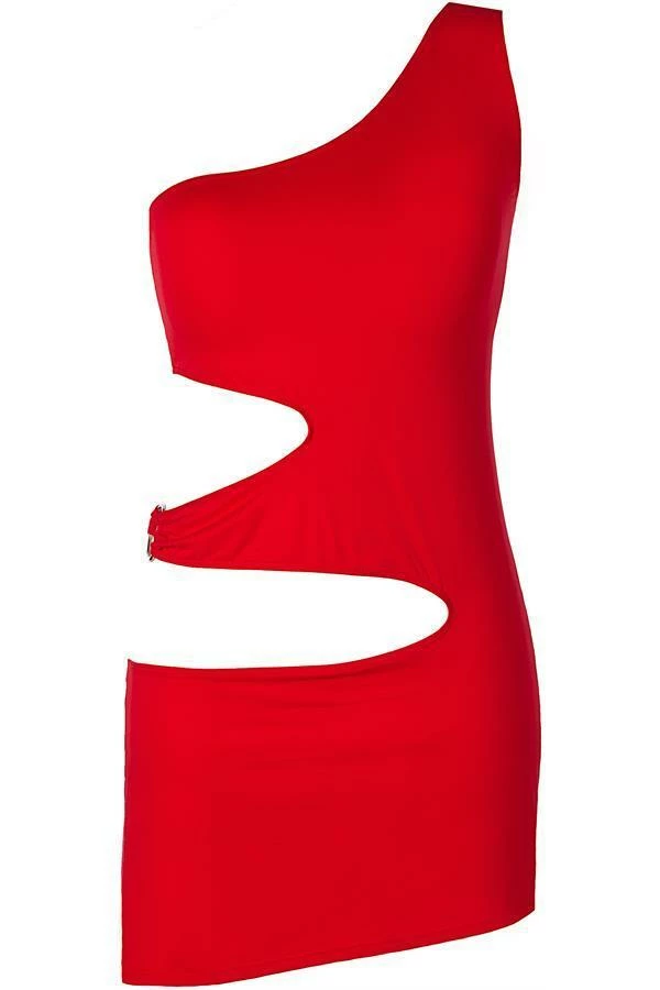 A red beauty. Yes, only with our phenomenal proposition Red microfiber fabric will attract the attention of many, arousing a tint of jealousy. You put on the dress from the top, and it is decorated with a silver circle on the hips. This fashion will make you feel amazing!