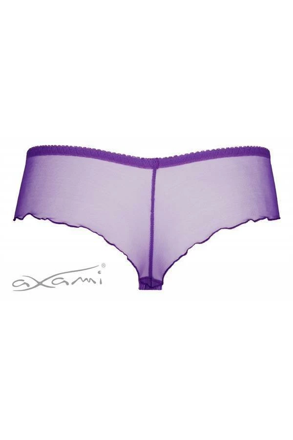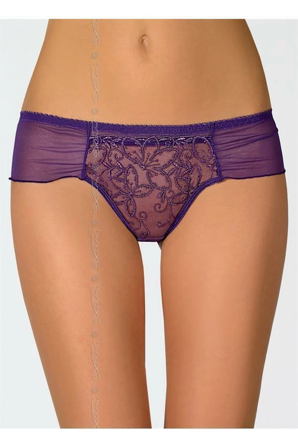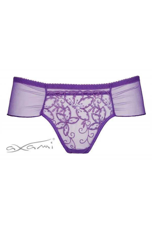 Alluring, refined G-string distinguish with tempting violet colour completed with transparent embroidery designed especially for Axami. Between floral motifs You can notice tiny but significant at the same time detail a Axami Logo. Comfortable and sensual model can fulfil one`s dreams, especially if co-ordinated with bra V-6291 Figue or brief V-6293 Figue.Â