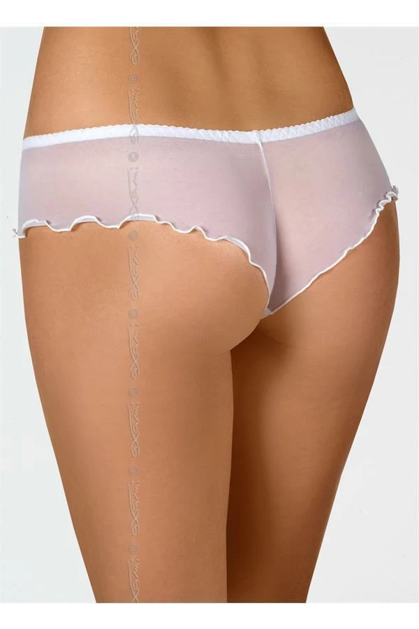 Alluring, refined G-String distinguish with subtle white colour completed with transparent embroidery designed especially for Axami. Between floral motifs You can notice tiny but significant at the same time detail a Axami Logo. Comfortable and sensual model can fulfil one`s dreams, especially if co-ordinated with bra V-6311 Vin blanc