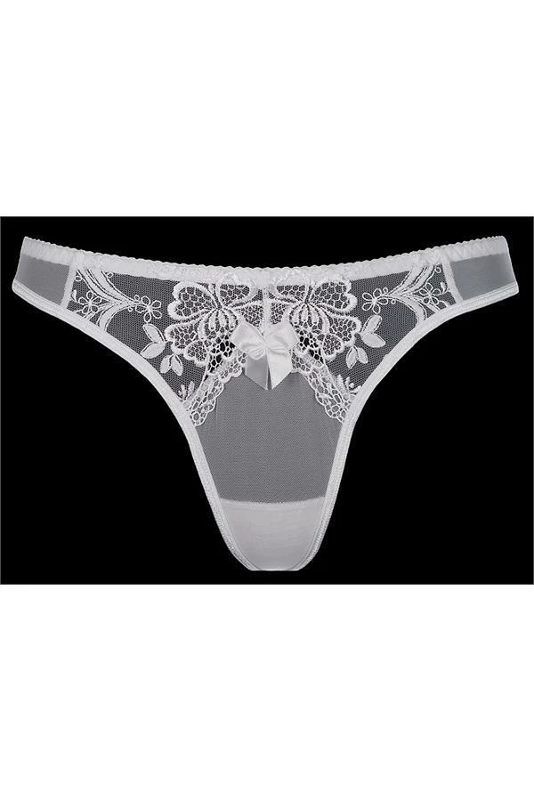 Subtle and delicate, white string Celebration V-6808 stun with openwork lace, transparent tulle and sexy cut. It will allow you to emphasize your natural beauty by colour, shape and texture of the material. They are the perfect complement to the corset V-6807.