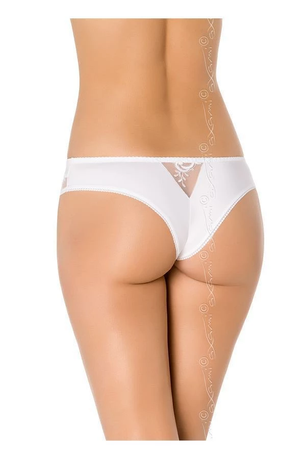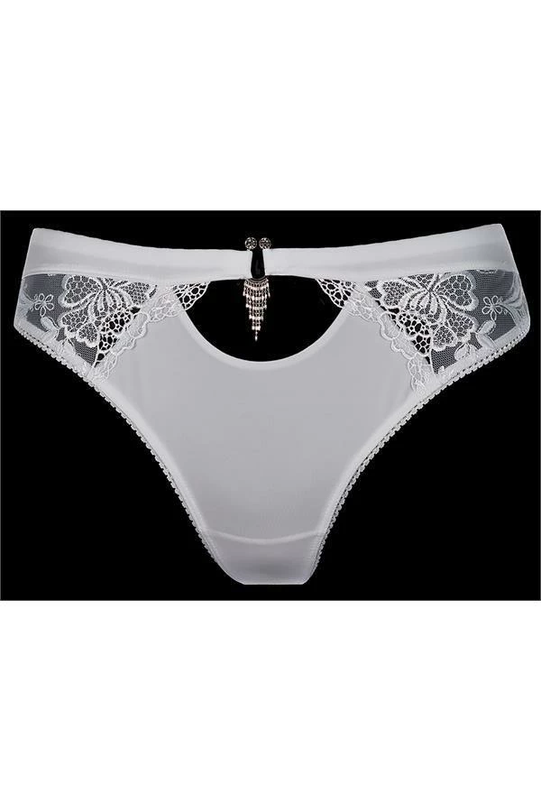 Beautiful, white brasiliana G-string seduces with sensual cut, sophisticated combination of fabrics and jewel embellishment.. This model emphasizes the unique nature of the most special moments, by providing you with the perfect look and comfort. Delightfully present when co-ordinated with bra Chandelles V-6821.