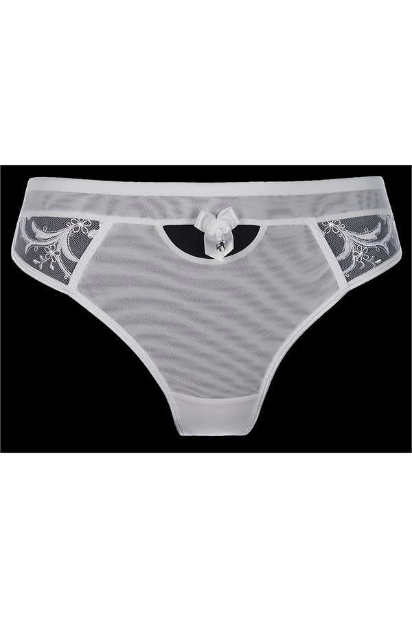 Subtle white microfiber G-string captivate with feminine cut, skittish additives and cut-outs. This is an unique proposition for the most special moments. It allows to fulfil your dreams,  without disappointments. Delicate touch of fabrics on your skin will be caress for your senses … especially when you co-ordinate with the push-up bra Grace V-6861 , garter belt  V-6862, garter V-6864 and stockings V-5144!