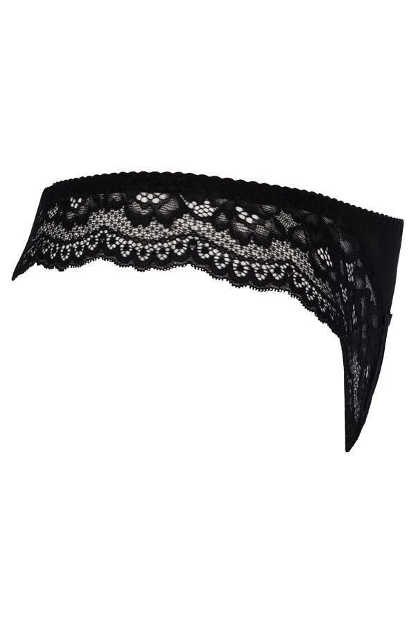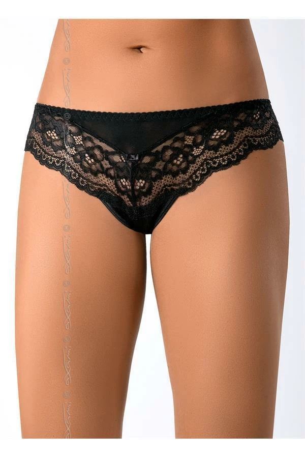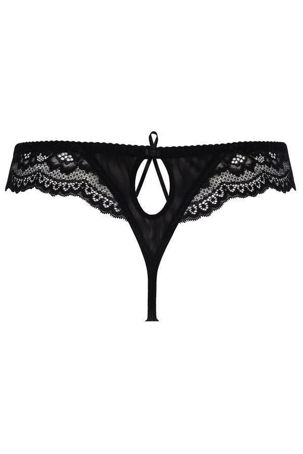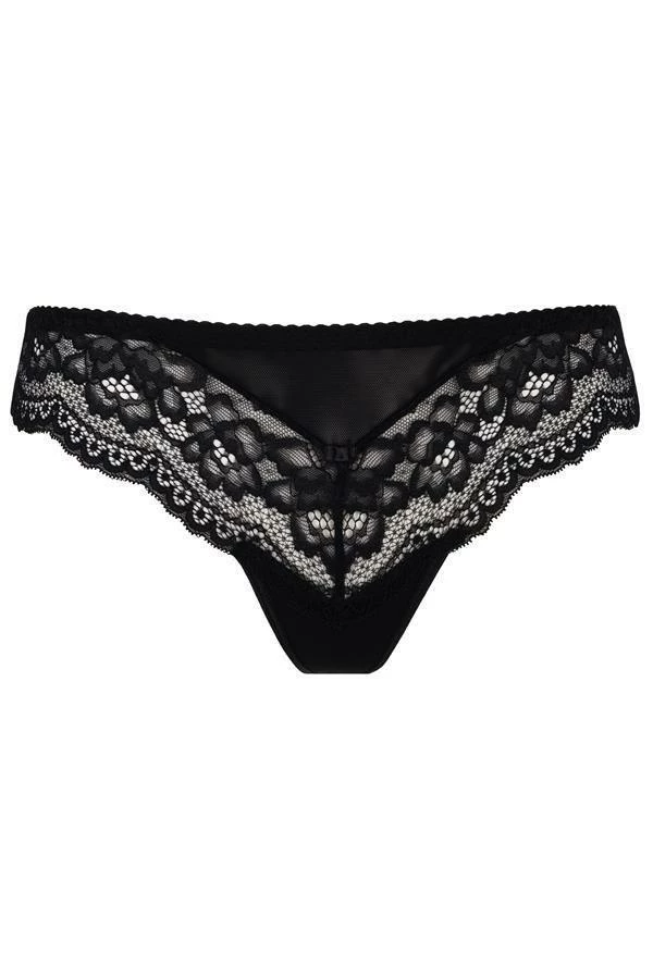 The avant-garde and bold cut of the black G-string are a challenge for the imagination, and temptation for the senses. Delicate, feminine lace and sexy cut at the back add piquancy whole composition. G-String perfectly combined when co-ordinated with bra V-7601.