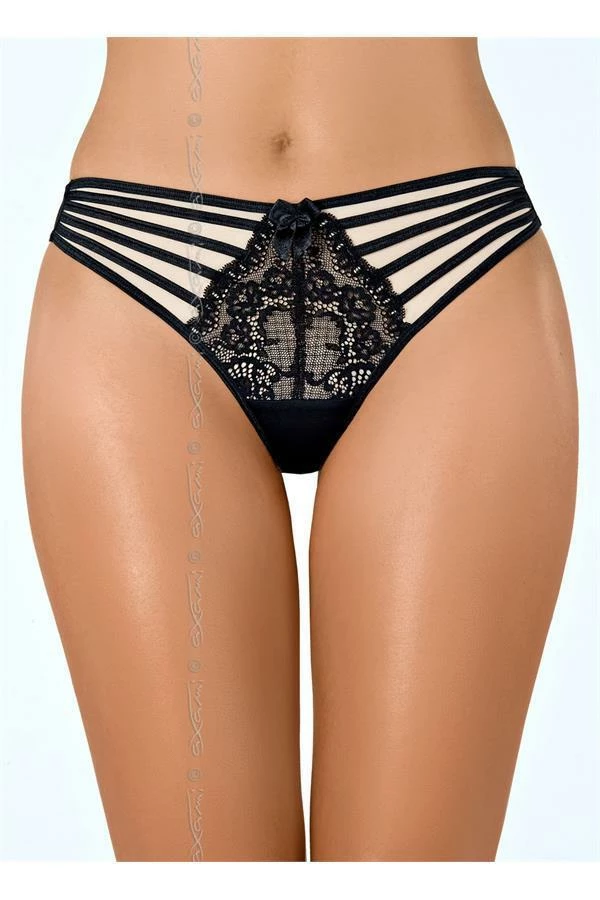 G-String are made of black, openwork lace and stripes is an incredibly attractive and sensual style. Certainly this model is hard to resist to, especially when co-ordinated with bra V-8031 and stockings V-5204 French Kiss.