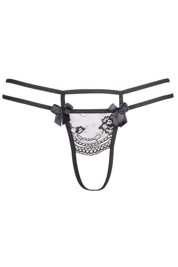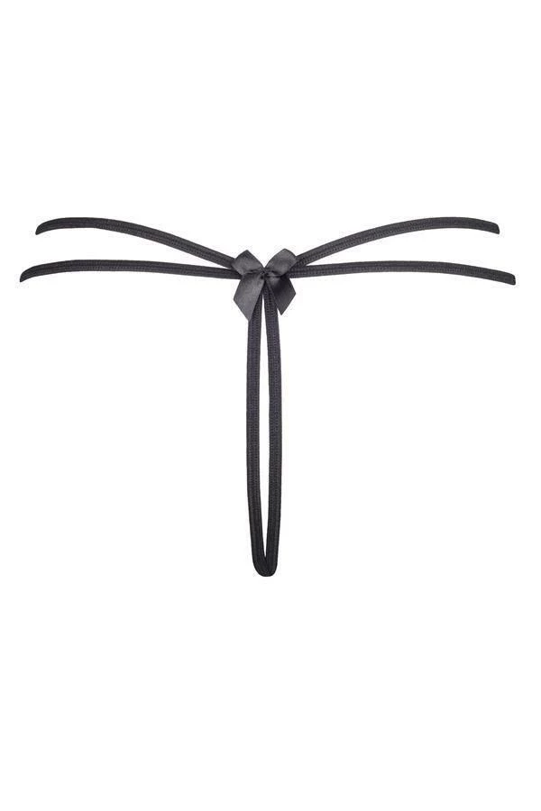 An original and sensual G-string certainly attracts the attention and not only yours. A black double belt emphasizes the roundness of your hips. A delicate lace ornament impresses with feminine motif. Satin bows are playful and charming. This is a unique proposition for remarkable women. This G-string can be co-ordinated with bra V-8691, garter belt V-8692 and stockings V-5204 .