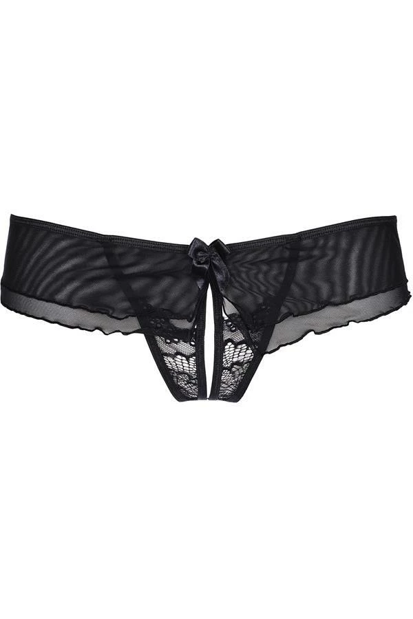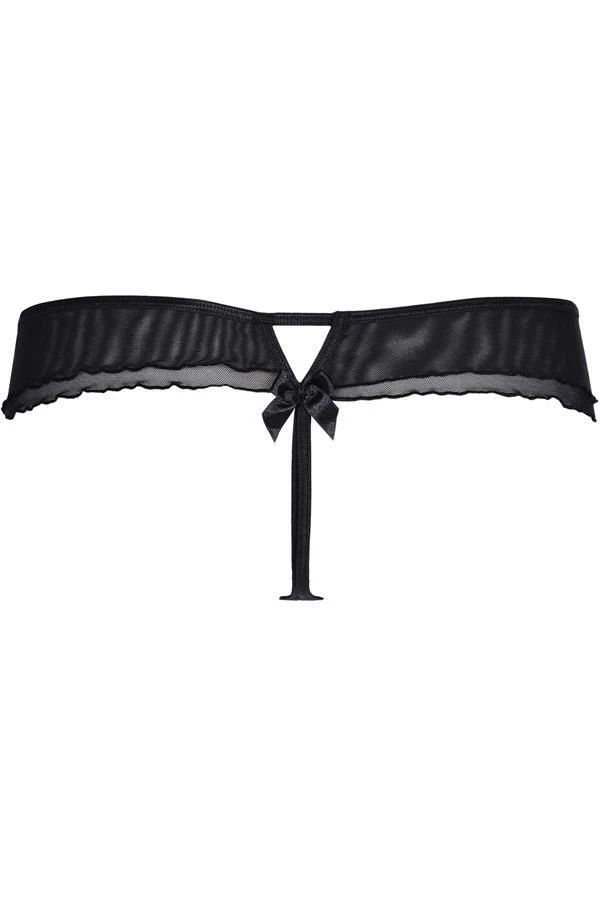 G-String that seduces with sensual cut and original lace, which combines black and silver colours. Elegant and sexy at the same time, it’s an excellent choice when you’re looking for unique lingerie!