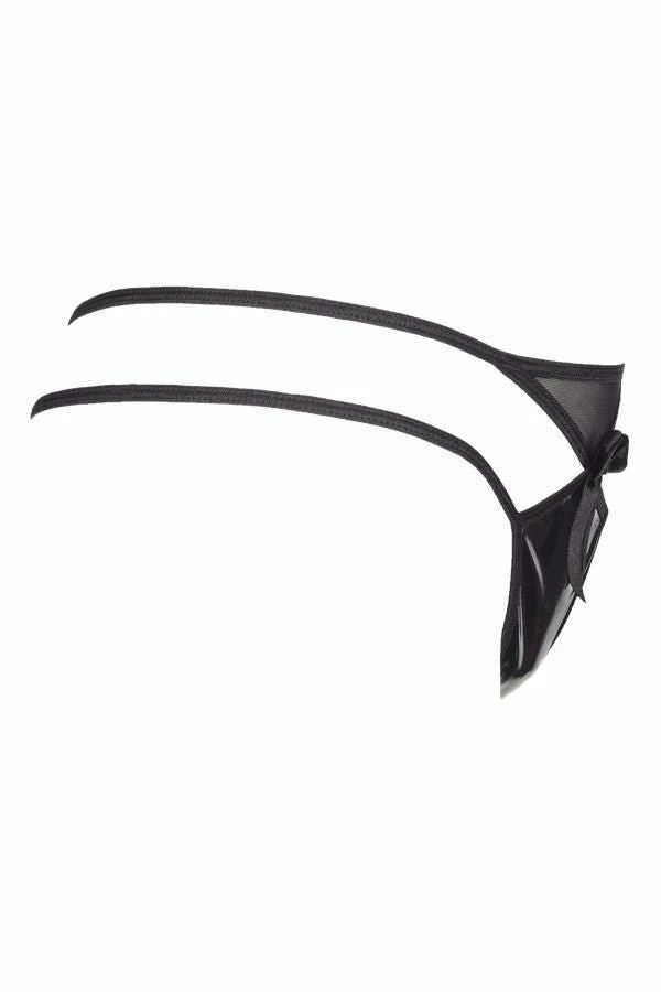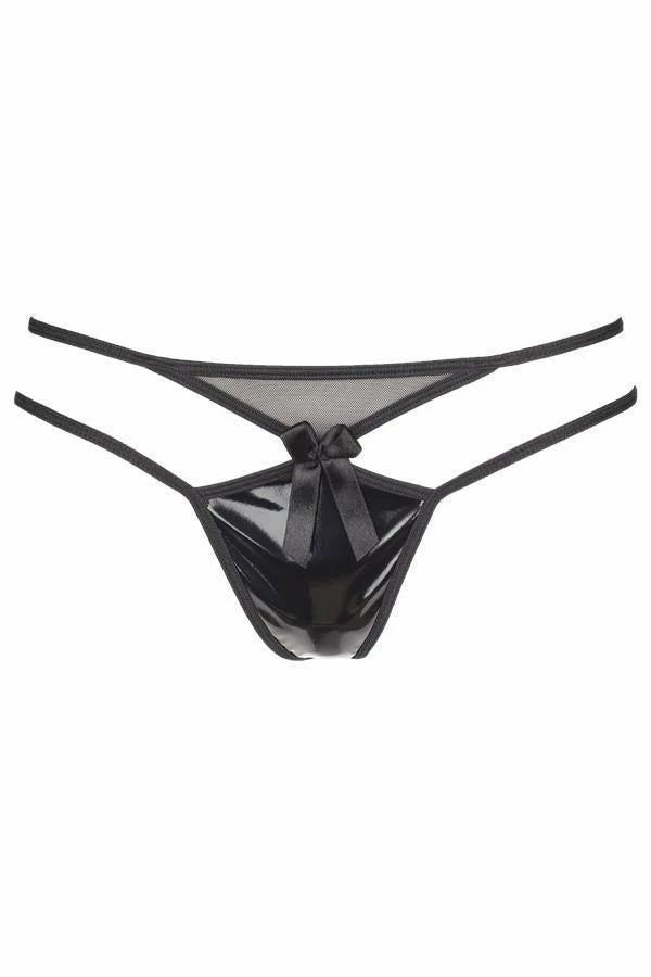 Tempting, black G-string seduces with the fancy design that will encourage to daring discoveries shiny material, perfectly harmonizes with transparent tulle, highlighting the charm of your body.