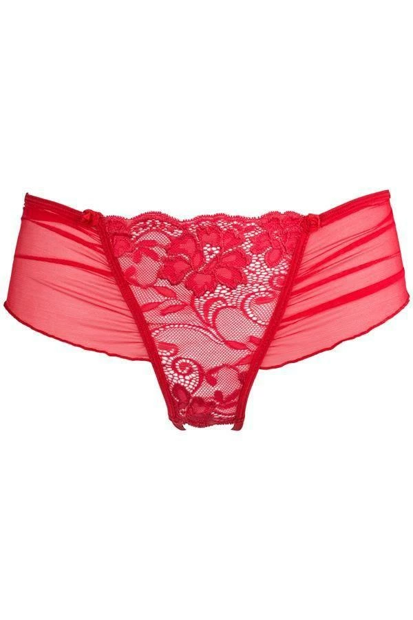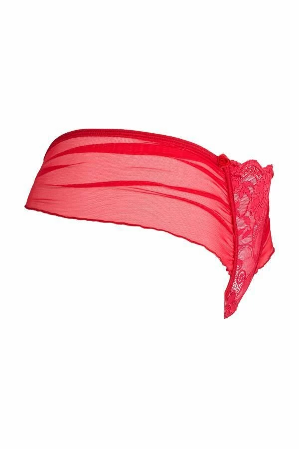 Red, sexy G-string is a breath-taking combination of tulle and lace. This G-string can be co-ordinated with bra V-8761 .