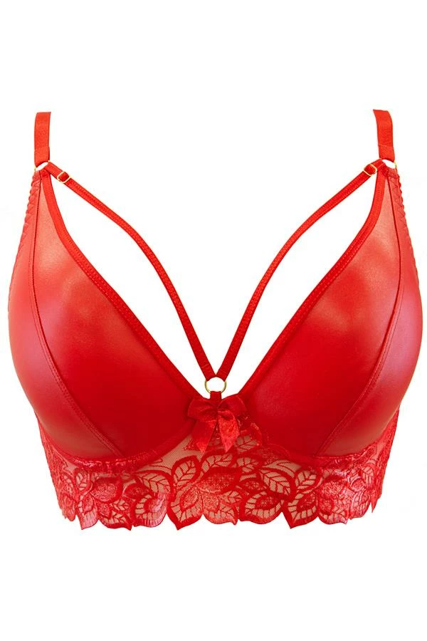 Red latex is the base of base of our latest collections. It wears fantastically and adjusts to your body. Give yourself a treat now ! This model has beautiful glossy embroidery on comfortable, soft tulle to make you look phenomenal. The bra has a five-row hook-and-eye fastening on the back and adjustable straps. In addition, the decorative strips on the breasts are adjustable, and all the elements such as hooks, regulators and rings, are gold. This design will make you feel amazing!