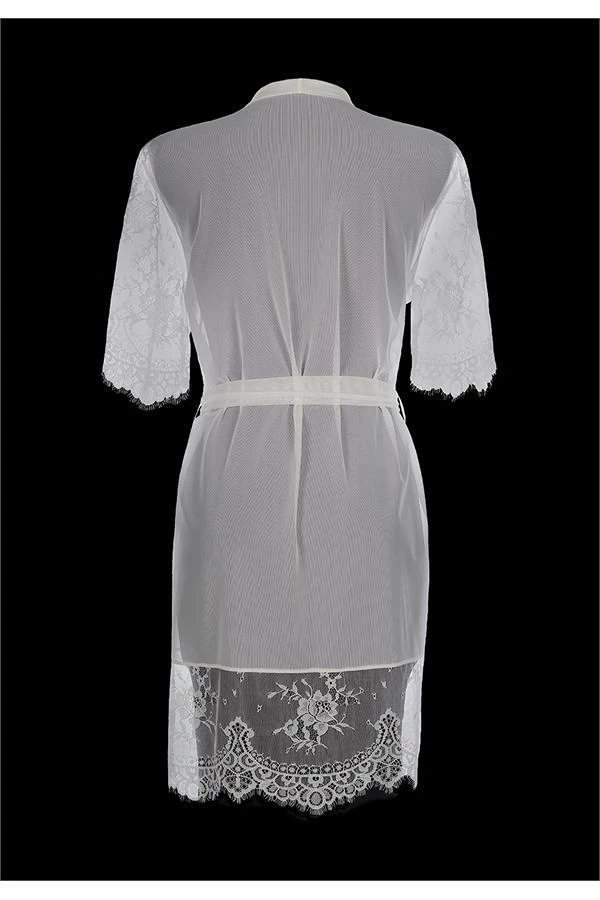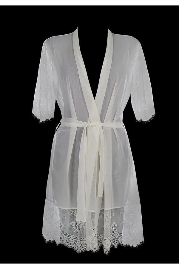 Exclusive and dreamlike ecru peniuar is a perfect way to begin and end the day in excellent mood. A touch of the highest quality, delicate fabrics will pamper your skin, covering you just like a luxurious mist. Stripe included. Peniuar is the perfect complement to lingerie Baby doll nightdress V-6969 Bells!