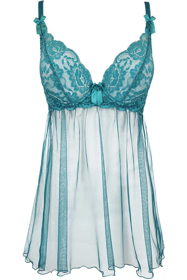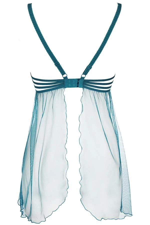 This dreamy lingerie babydoll is very unique proposition full of charm. Made of delicate tulle in green color adorned with lace made of beautiful, golden flowers. This model gives you the feeling of lightness and relax.