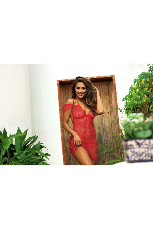 Transparent, extremely feminine red lingerie baby doll exposes your body with the most beautiful lace. Its touch on your skin will be a sensual experience, and the impression you will make will be unforgettable. Delicate lace combined with a seductive design is a perfect choice for special occasions. The matching thong panty is also included