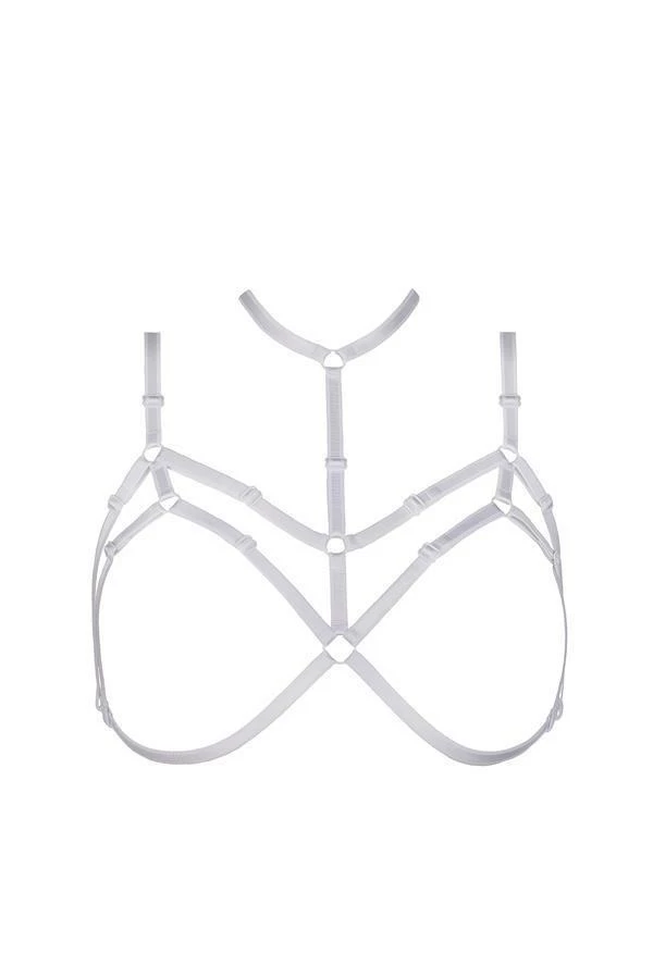 White bra harness is a fancy addition that you can freely compose with any white bra you want! It makes perfect, tempting set when worn with bra V-8121 especially when you choose to co-ordinate with garter belt V-8122 and briefs V-8123 .