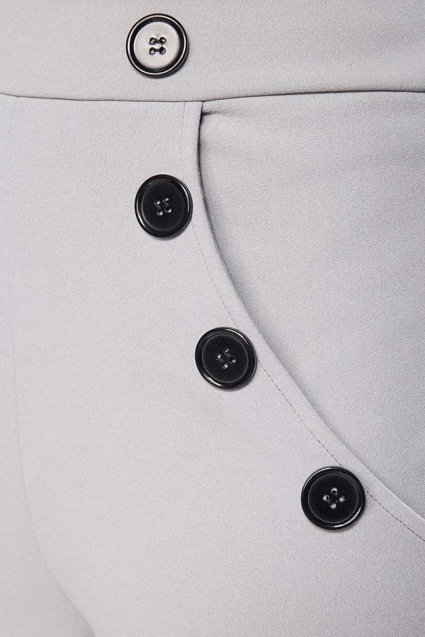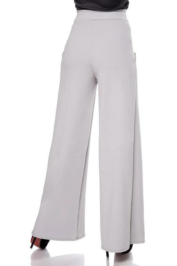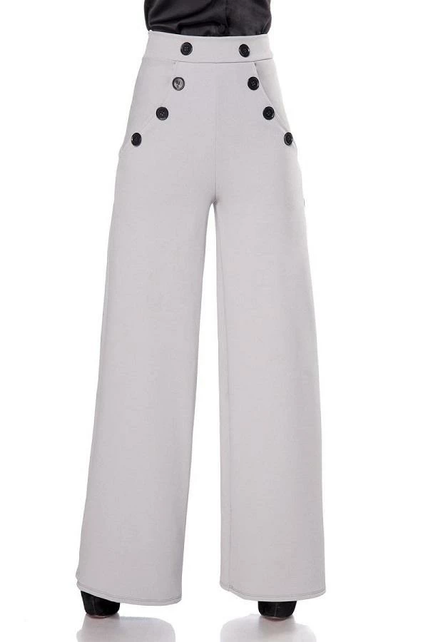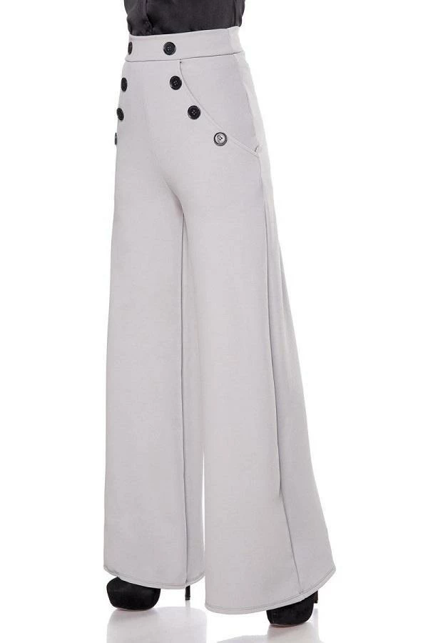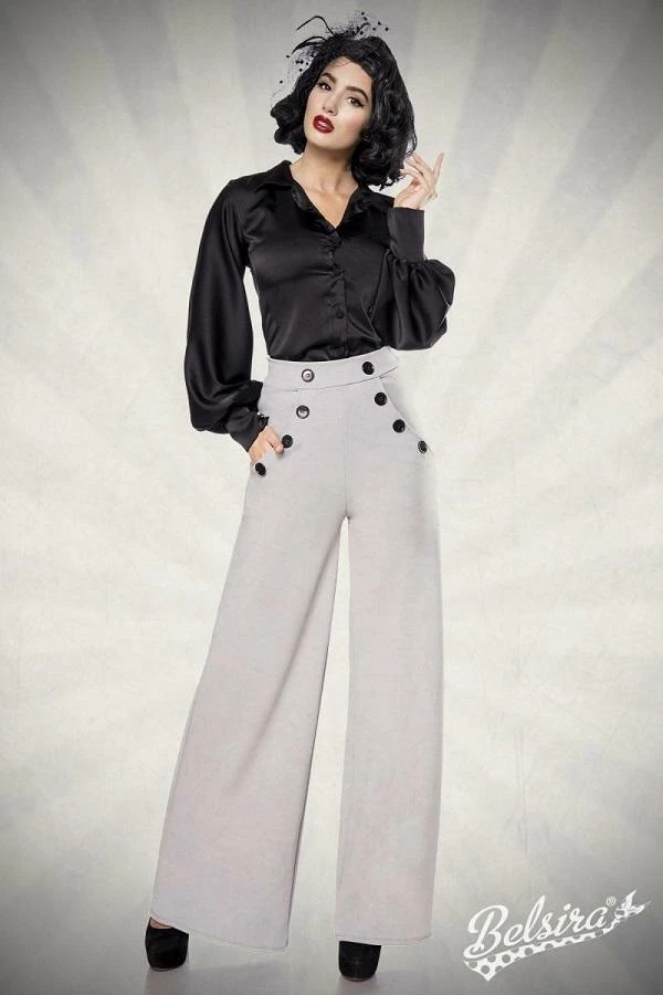 Vintage high waist trousers with flared legs and decorative buttons at front. There is a fine zipper at side of trousers and inside leg length approximately 86 cm
