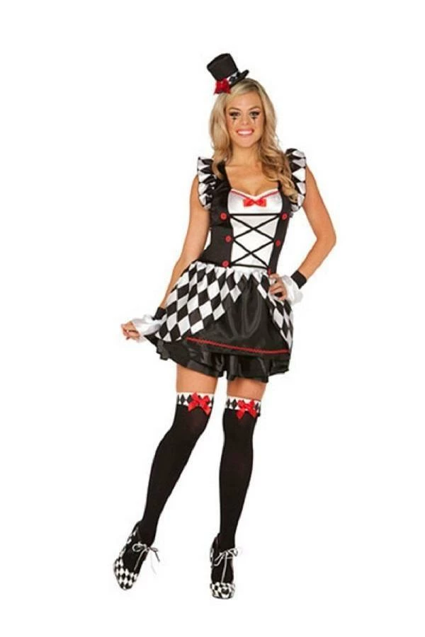 WAS €49.95 NOW €24.95 Clown inspired ladies fancy dress costume by Elegant Moments USA. Court Jester Ladies Costume Sexy Court Jester Costume includes dress with attached tulle skirt, arm bands, hat and hose toppers. Available sizes: Small, Medium, Large and X-Large Code: Elegant Moments EM 9227. Buy now with worldwide shipping  Product Theme: Circus, jester, Halloween, clown costume.  IMMEDIATE SHIPPING WORLDWIDE FROM IRELAND |