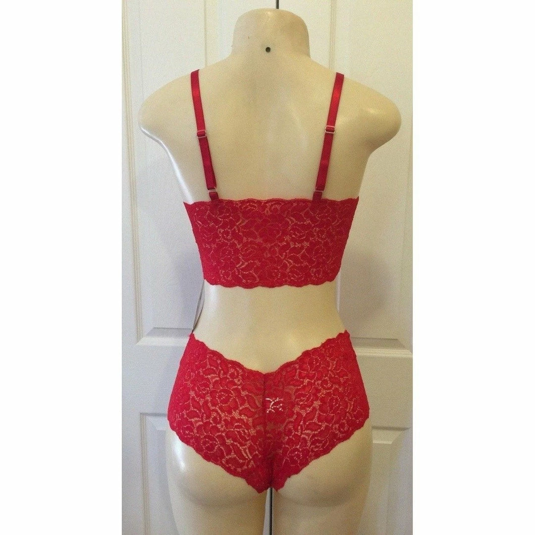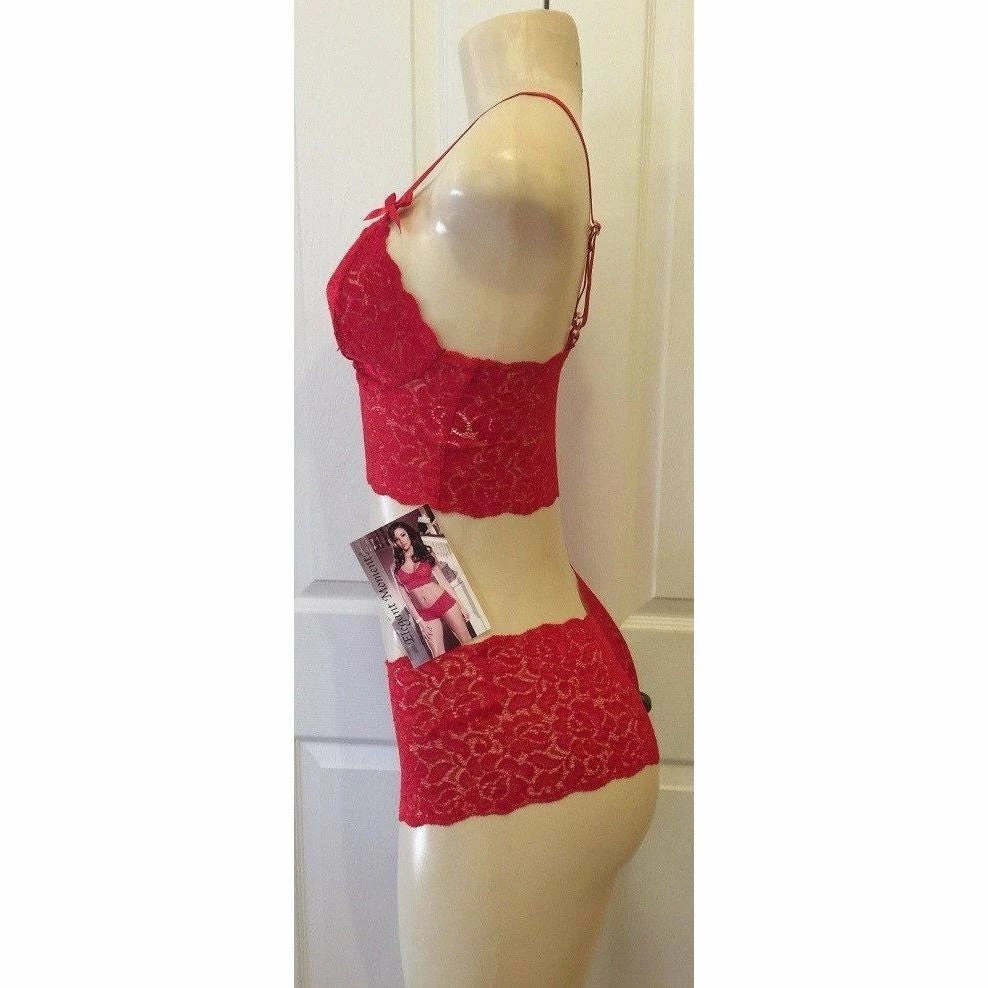 Set includes stretch lace camisole top with adjustable straps, satin bow details and matching booty shorts.