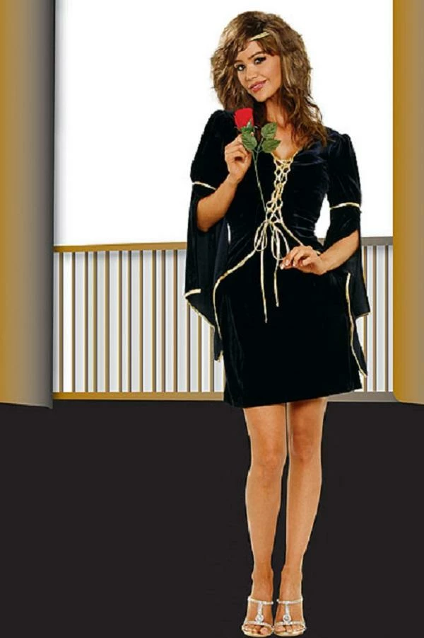 Royal princess fancy dress costume. This is a three piece costume which includes a mini dress with a lace up bodice , a headband and a rose.