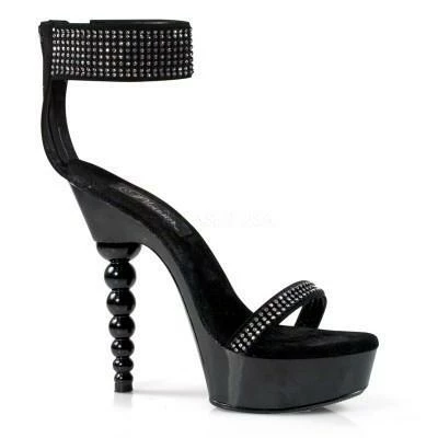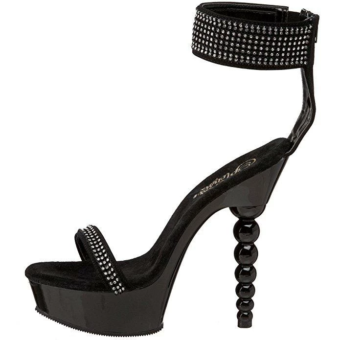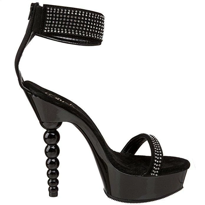 The ultra-tall silhouette sandal features sparkling straps and a glossy base, and its heel has spherical shapes that’ll keep everyone looking as you walk away.