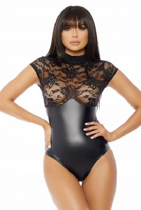 “Dark Desire” is a see through, lace lingerie black bodysuit, with matte contrast.