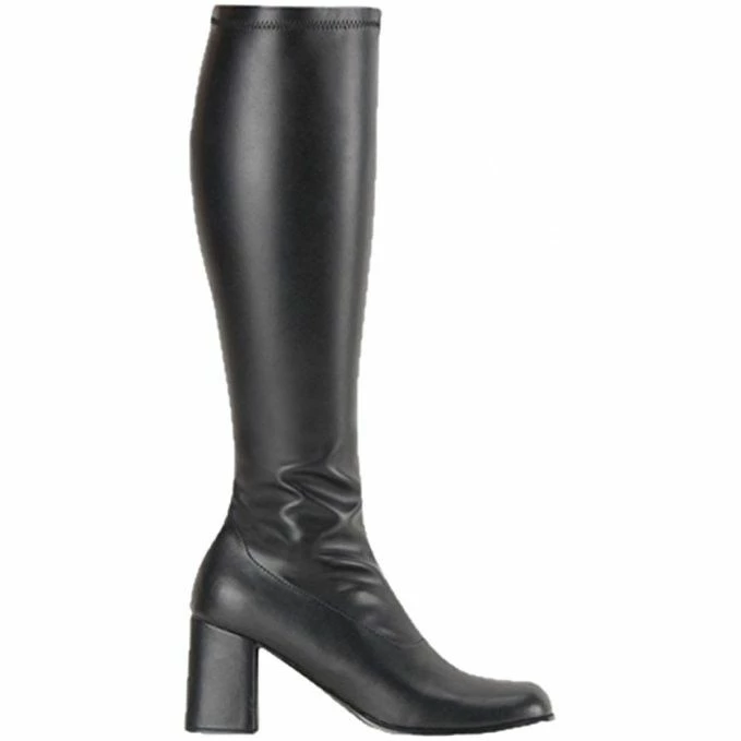 Gogo Retro style chunky 3″ heel single sole knee boots with a side zip.