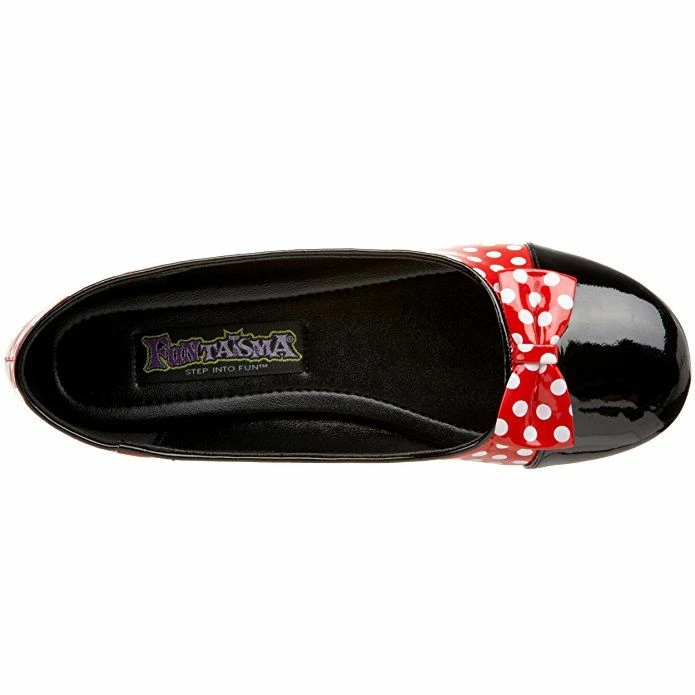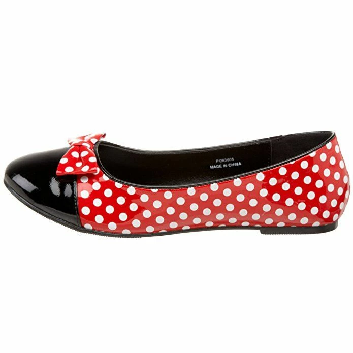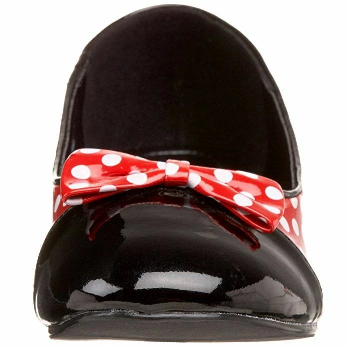 Complete your Mouse outfit with our special costume occasions or any other time with these adorable flats. Red and white polka-dot shoes and a patent leather upper. Heel measures approximately 1/8″