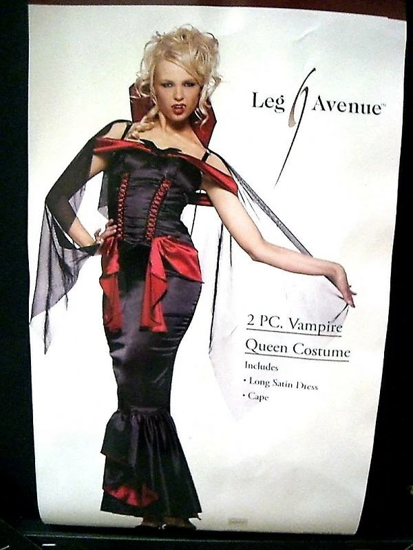 This is a two-piece Vampire Queen Costume, which includes a long satin dress and a cape.