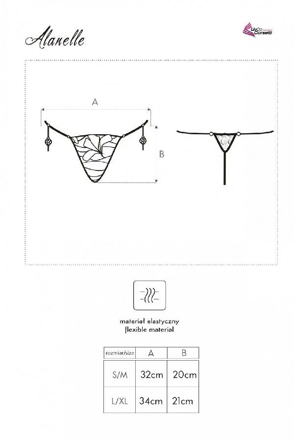 This sexy set emanating sensuality consists of cuffs and thongs in black and red tones. Wrist-to-elbow cuffs, laced, decorated with braid and red flowers. Connected with each other with a delicate, silver chain. The thongs are decorated with jewellery rings on chains.