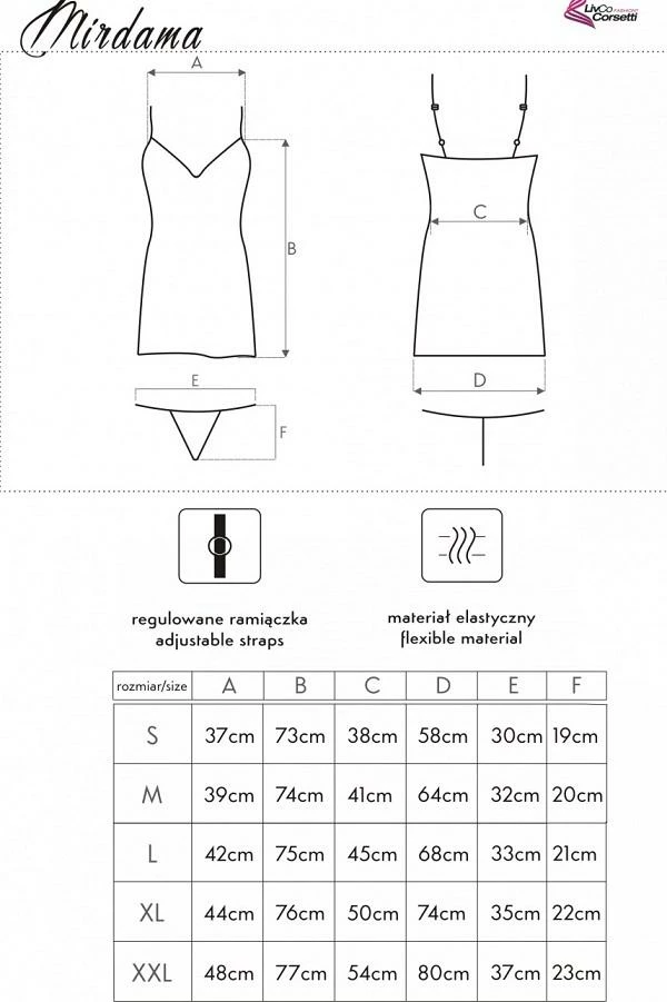 White short nightdress with a low back and adjustable straps. Can be co-ordinated with matching robe Edelina seen HERE . Thong panty is also included with nightdress. Nightdress is available in Black, Navy and White