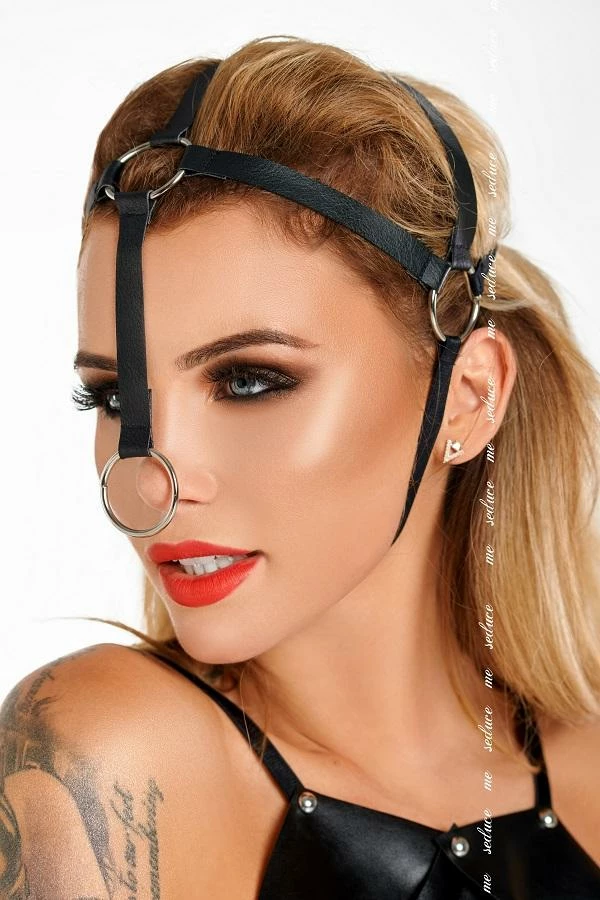 Black stretchy elasticated strap head harness featuring silver loop detail.
