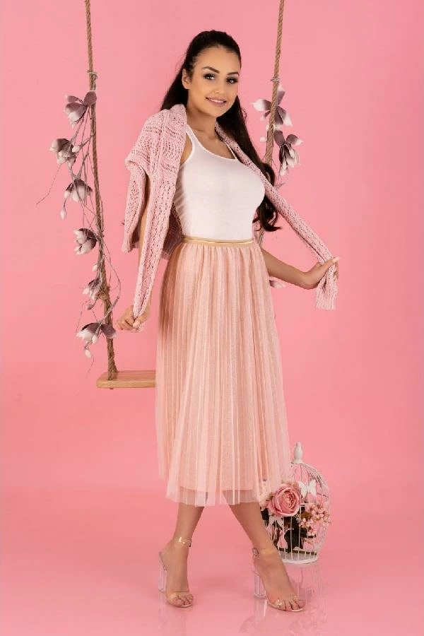 Long Swing skirt with lining and a elasticated waistband. Colours available in pink or Mint green.