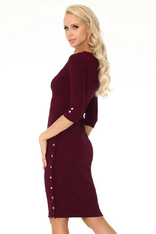 Slim fitting dress with 3/4 length sleeves, studs down the side of dress and on sleeve