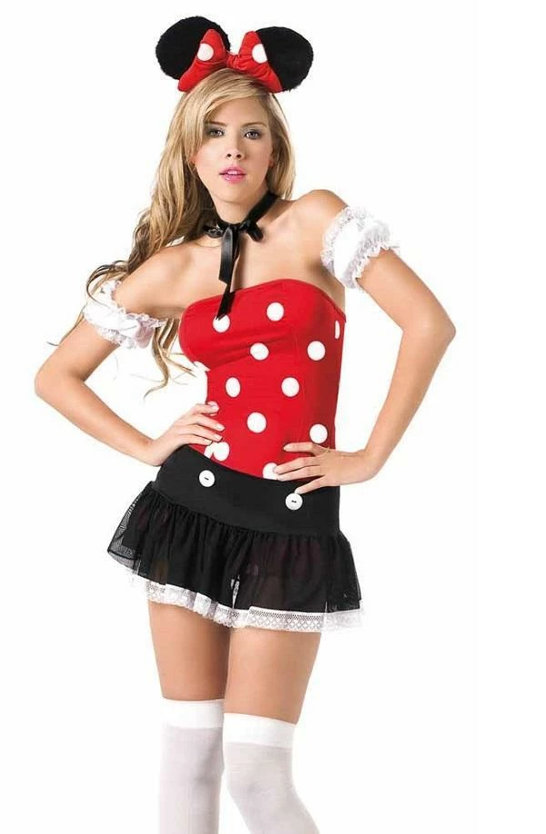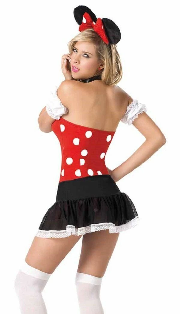 You’re sure to take the big cheese dressed in this playful mouse costume. This charming costume set includes strapless mini dress, eyelet trim mini skirt & arm bands, ribbon collar and mouse ears headband.