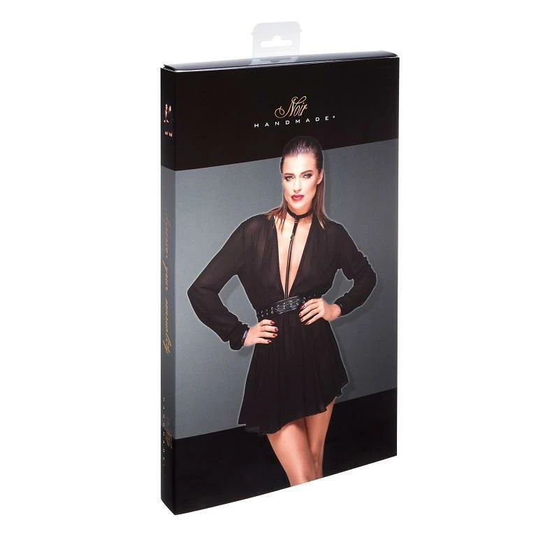 Chiffon mini dress with eco-leather choker and belt. Trendy and translucent dress with remarkable comfort to wear. Definite dress to impress.